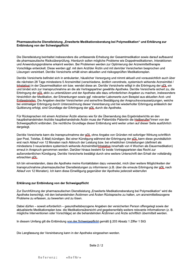 - Das Einverständnisformular zur Polymedikationsanalyse (pDL)